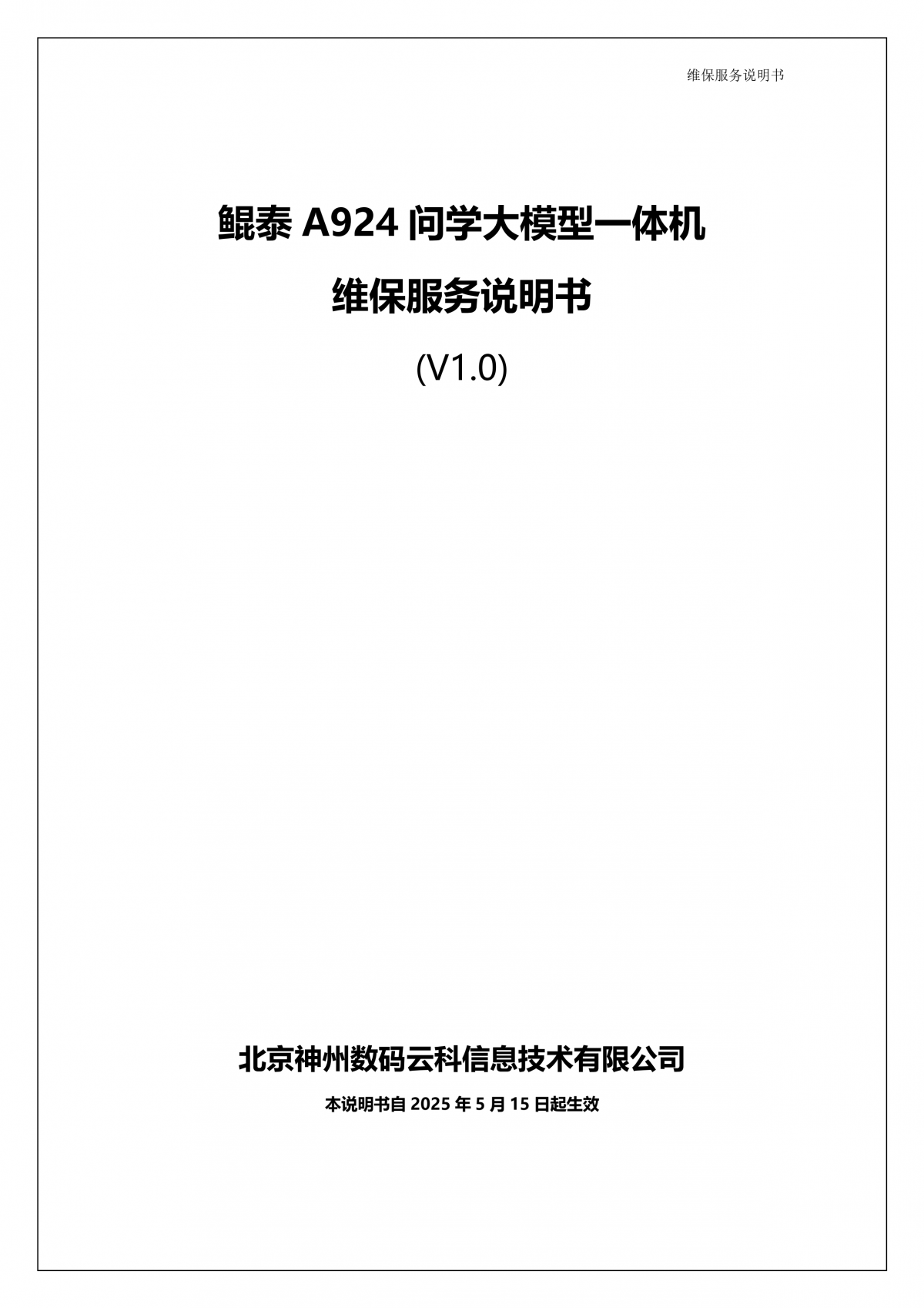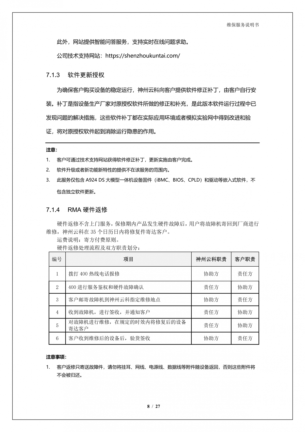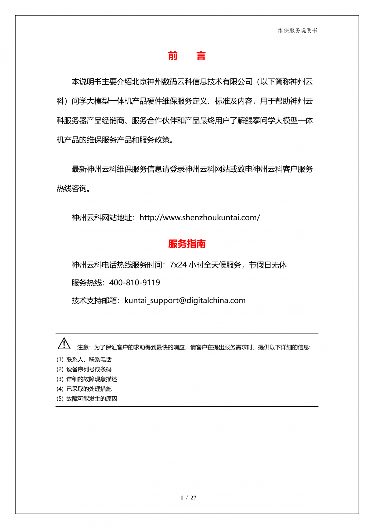 凯发K8A924 DS大模型一体机硬件维保服务说明书_V1.1